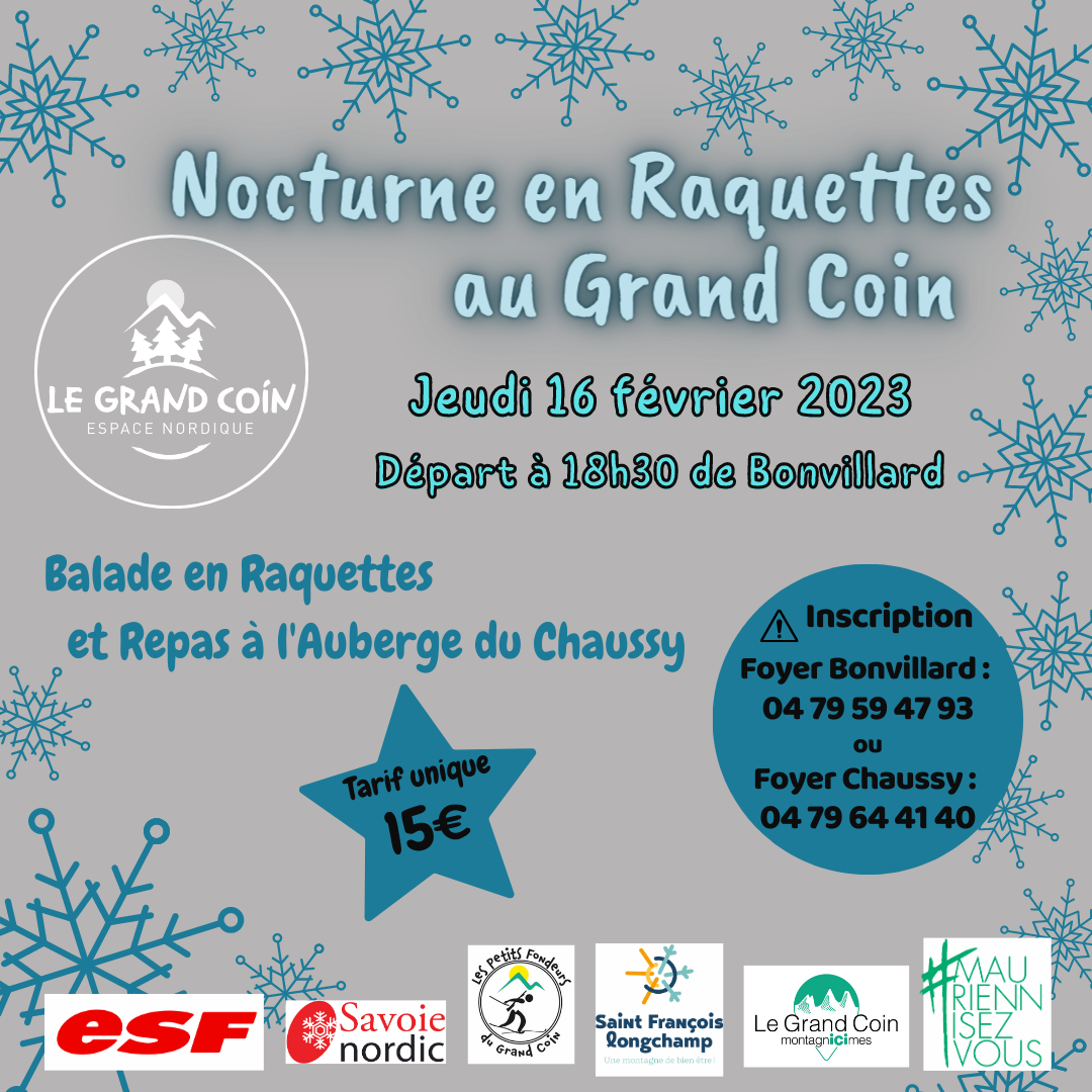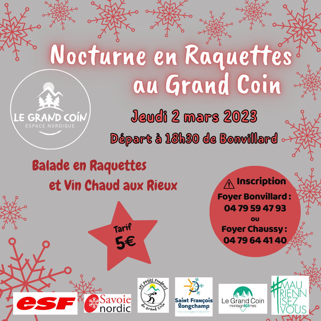 A la lueur de vos lampes et de la lune, venez profiter d'une ballade nocturne en raquettes. Le départ se fait du Foyer de Bonvillard jusqu'aux Rieux où sera servi le vin chaud de l'amitié.